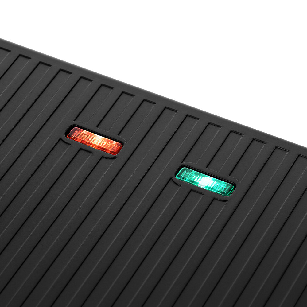Гриль оснащен термостатом для поддержания температуры панелей, а также индикаторами работы и нагрева.