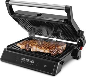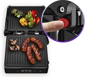 На панели нанесено антипригарное покрытие, что позволяет готовить с минимальным количеством масла или без него. Такое покрытие также облегчает процесс чистки панелей. Панели у этого гриля съемные.