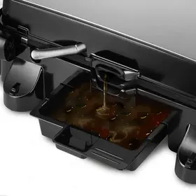На панели нанесено антипригарное покрытие, что позволит вам готовить с минимальным количеством масла. Такое покрытие также облегчит процесс чистки панелей. Панели электрогриля съёмные, что упрощает уход за прибором.