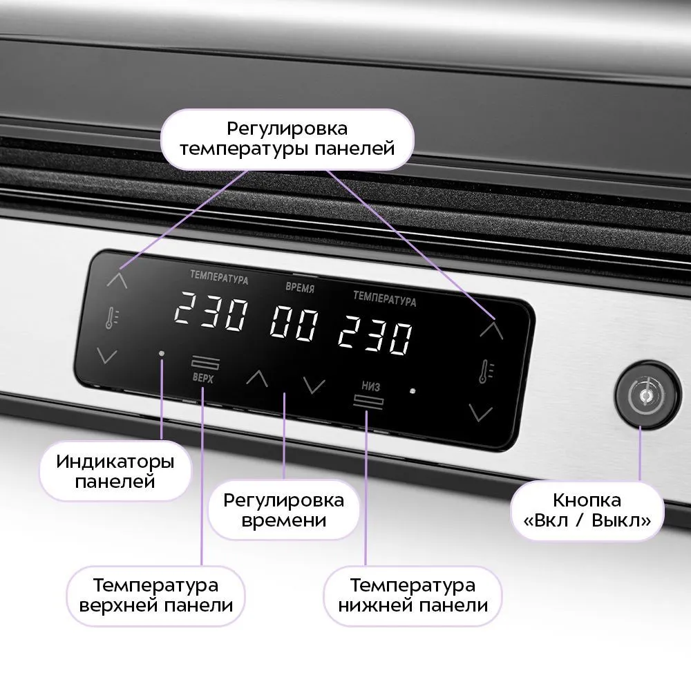 автоматическое отключение, возможность использования верхней панели как самостоятельной, защита от перегрева, регулировка температуры