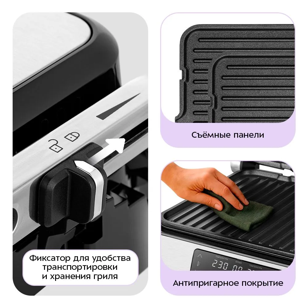 антипригарное покрытие, крышка, поддон для сбора жира