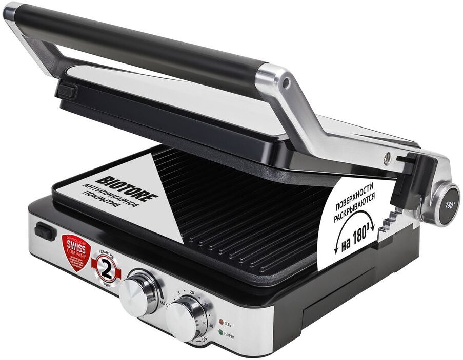 Функции | термостат / до 240 °С / таймер выключения / 30 мин / съемные пластины подстройка по высоте (шарнир) регулировка высоты верхней пластины открытие на 180° |