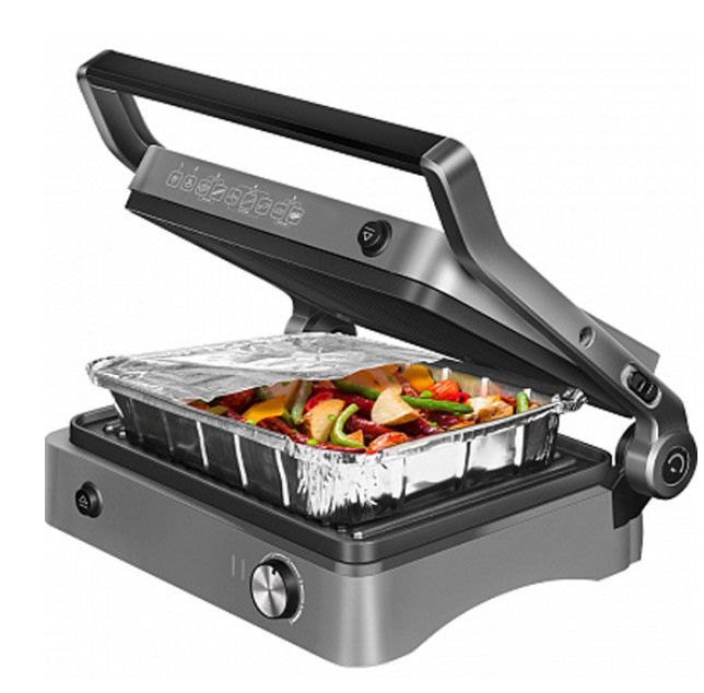 СтейкМастер подходит и для приготовления запеченных блюд — омлетов, рагу, пирогов, бисквитов. Выложите ингредиенты в алюминиевую форму* для выпечки, накройте фольгой, поставьте на панель и закройте крышку – блюдо получится как в духовке.