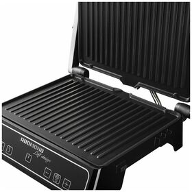 Подготовьте ингредиенты, выложите их на панели и закройте крышку прибора. Этим методом вы сделаете стейки правильной прожарки, аппетитные бургеры как ресторанах, кебабы, куриные крылышки, шаверму и множество других вкусных угощений.