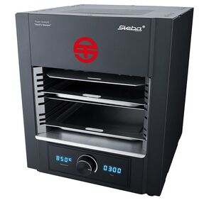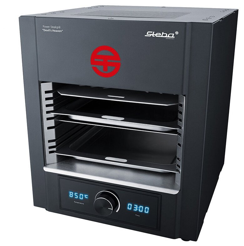 Гриль Steba PS M2000 обладает бесступенчатым регулированием температуры от 400 ° до 850 ° C. В корпус встроен дисплей для температуры, таймера и температуры ядра. Гриль имеет съемные слоты и решетку из нержавеющей стали.