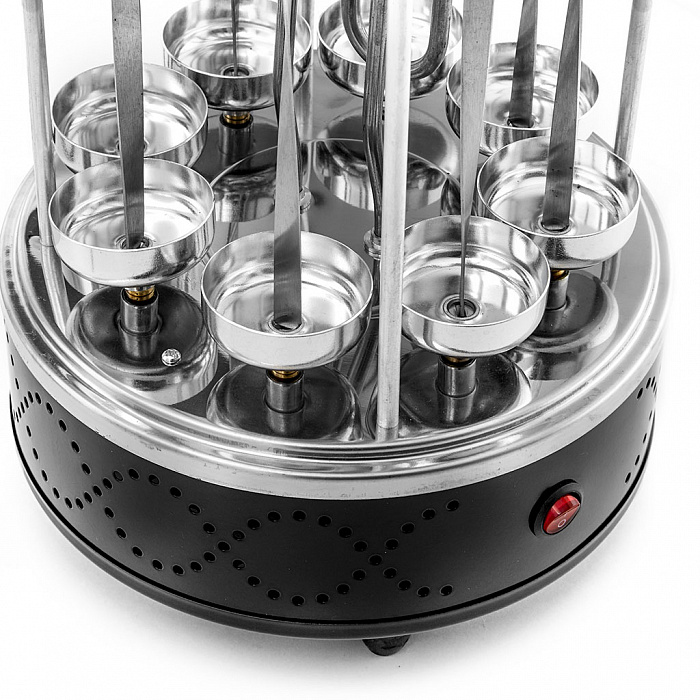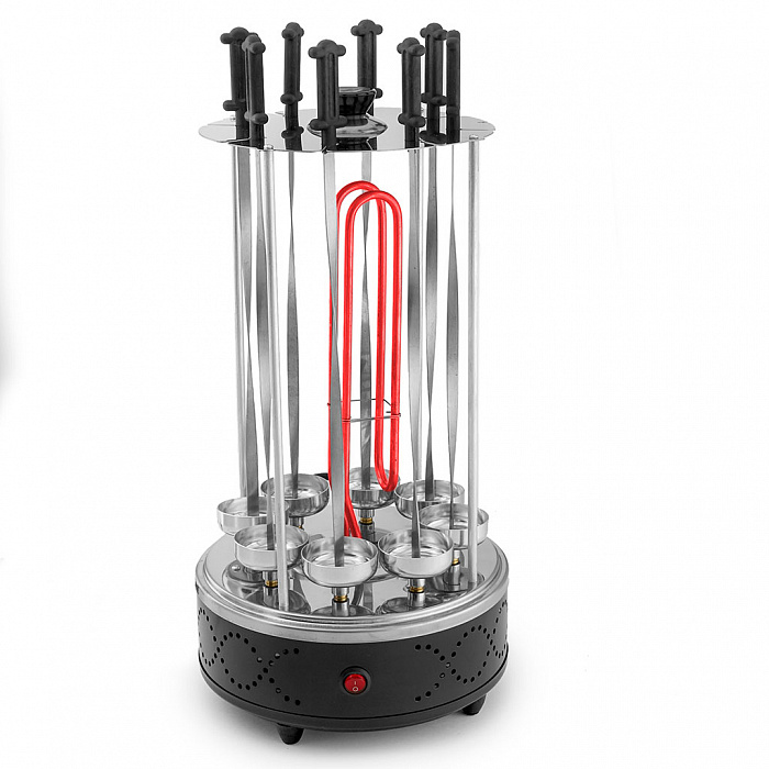 Электрошашлычница предназначена для использования в бытовых и аналогичных условиях и представляет собой устройство для приготовления гриля, шашлыка и других блюд из мяса, рыбы, овощей и др. Тип прибора - электрошашлычница с вертикальным расположением шампуров Вертикальный нагревательный элемент (ТЭН) из нержавеющей стали Тепловой экран из нержавеющей стали с ненагревающимися ручками 8 шампуров из нержавеющей стали с ненагревающимися ручками 8 чашечек для сбора жира, предотвращающих загрязнение шашлычницы Кнопка включения/выключения на корпусе прибора со световым индикатором работы Функция автоматического вращения шампуров для равномерного и быстрого приготовления продуктов Упаковка: цветная коробка