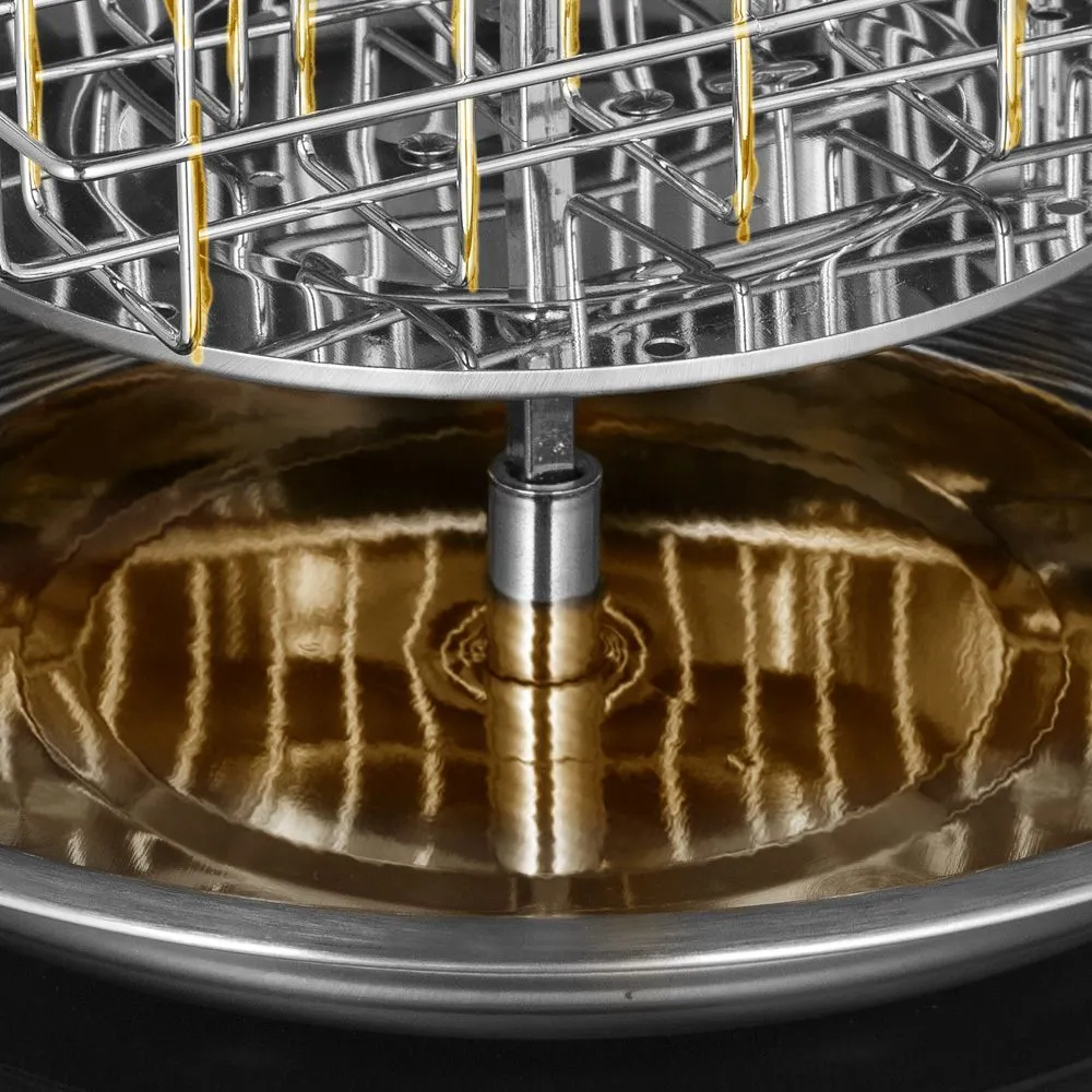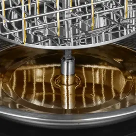 Под шампурами расположена специальная тарелочка для сбора сока и жира. После приготовления шашлыка эту тарелочку можно легко снять и вымыть с моющим средством.
