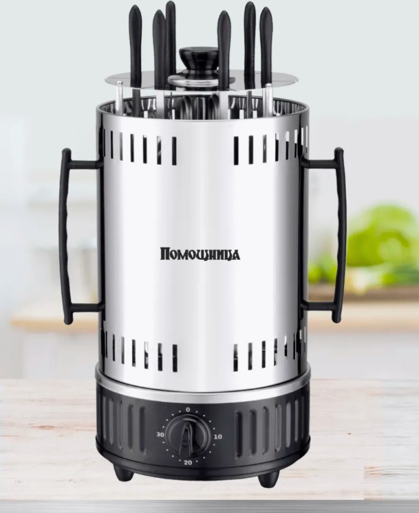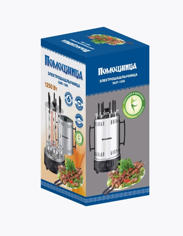 Комплектация шашлычница; защитный кожух; Руководство; 6 шампуров; 6 чашей для сбора жира