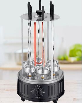 Особенности шашлычницы электрической автоматическое вращение шампуров; поддон для сбора жира; таймер обратного отсчета