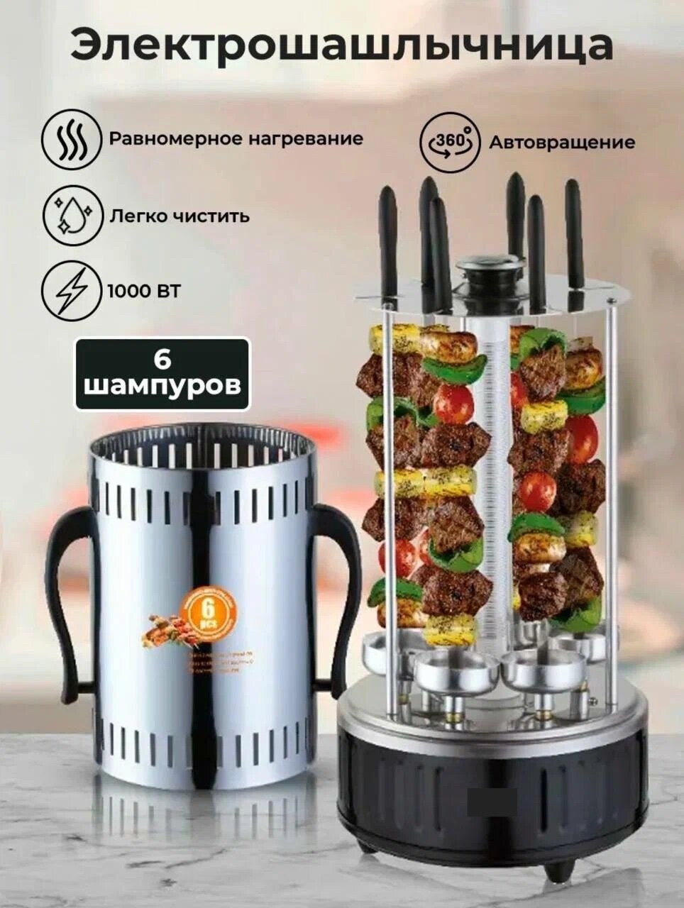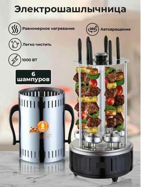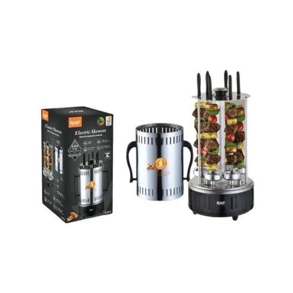 Электрошашлычница Raf R.8612 — это удобное и современное решение для приготовления ароматных и сочных шашлыков прямо у вас на кухне. Модель имеет мощность 1000 Вт, что обеспечивает качественную прожарку мяса. В комплект входят 6 шампуров, которые автоматически поворачиваются, гарантируя равномерную термическую обработку со всех сторон.