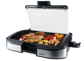 Ухаживать за грилем не составит труда, ведь съёмную панель (40 x 29 см) можно легко помыть под проточной водой, а антипригарное покрытие не даст прилипнуть жиру и остаткам еды.Панель разделена на две зоны, «с рисунком» для жарки стейков или рыбы и гладкой поверхностью для сосисок, морепродуктов.