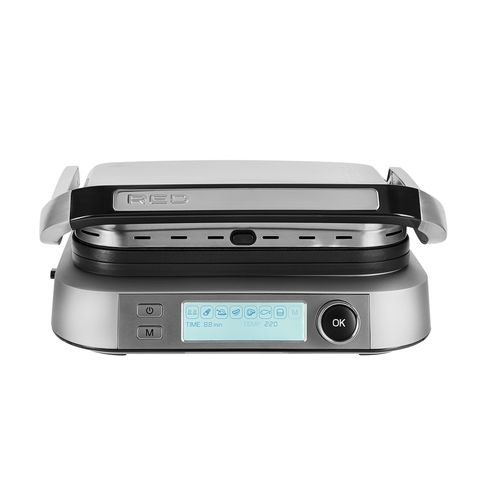 Приготовить идеальный стейк на плите не просто: процесс приходится постоянно контролировать, сверху мясо уже подгорает, а внутри может оказаться сырым. Готовя в SteakMaster подбирать параметры приготовления не нужно, достаточно выбрать одну из 7 встроенных автоматических программ: «Мясо», «Рыба», «Птица», «Бекон», «Сосиски», «Котлеты и бургеры», «Разморозка/разогрев». Гриль-духовка автоматически нагреется до предустановленной оптимальной температуры, и установит время приготовления исходя из толщины продукта.