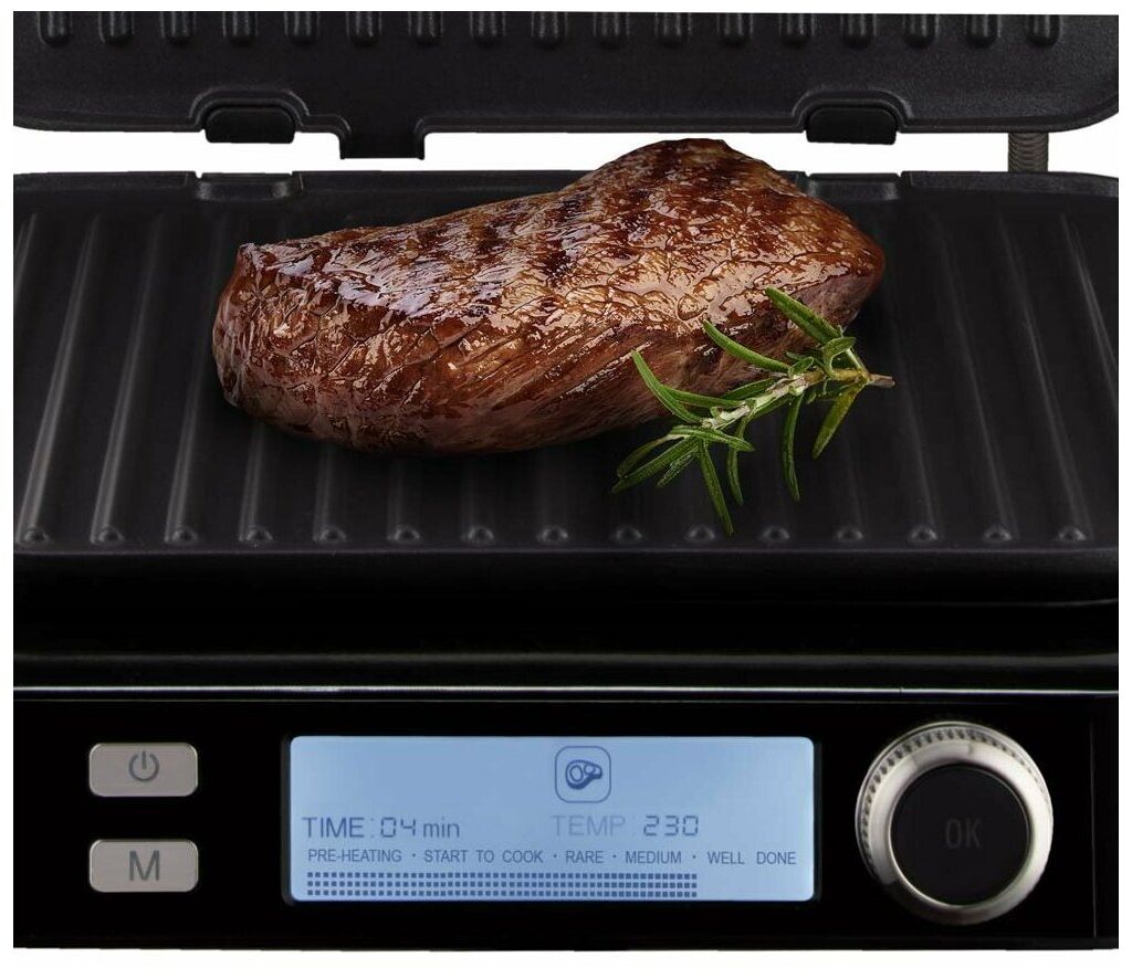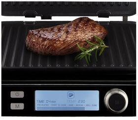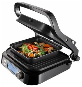 Со SteakMaster легко приготовить аппетитные и сочные блюда гриль. Просто выложите ингредиенты на панели и выберите одну из 7 автоматических программ: бекон, птица, сосиски, мясо, рыба, котлеты И бургеры, разморозка. Устройство начнет нагрев до предустановленной температуры, определит толщину продукта и оптимальное время жарки.