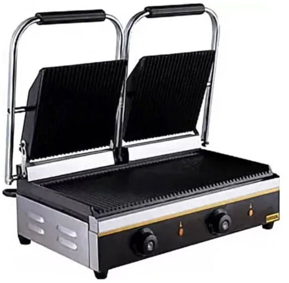 Идеальное качество прожарки и быстрота приготовления обеспечиваются благодаря равномерному нагреву и одновременному воздействию двух рабочих поверхностей плотно прилегающих к продуктам.