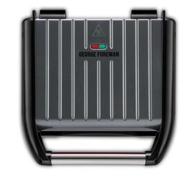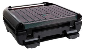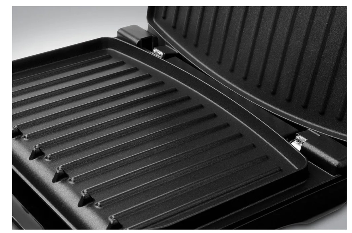 Электрогриль George Foreman 25041-56 имеет принципиально новый дизайн. На его антипригарных пластинах можно приготовить до 5 порций гриля. Имеется поддон для жира и капель с системой фиксации. Есть возможность вертикального хранения и отсек для шнура.
