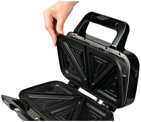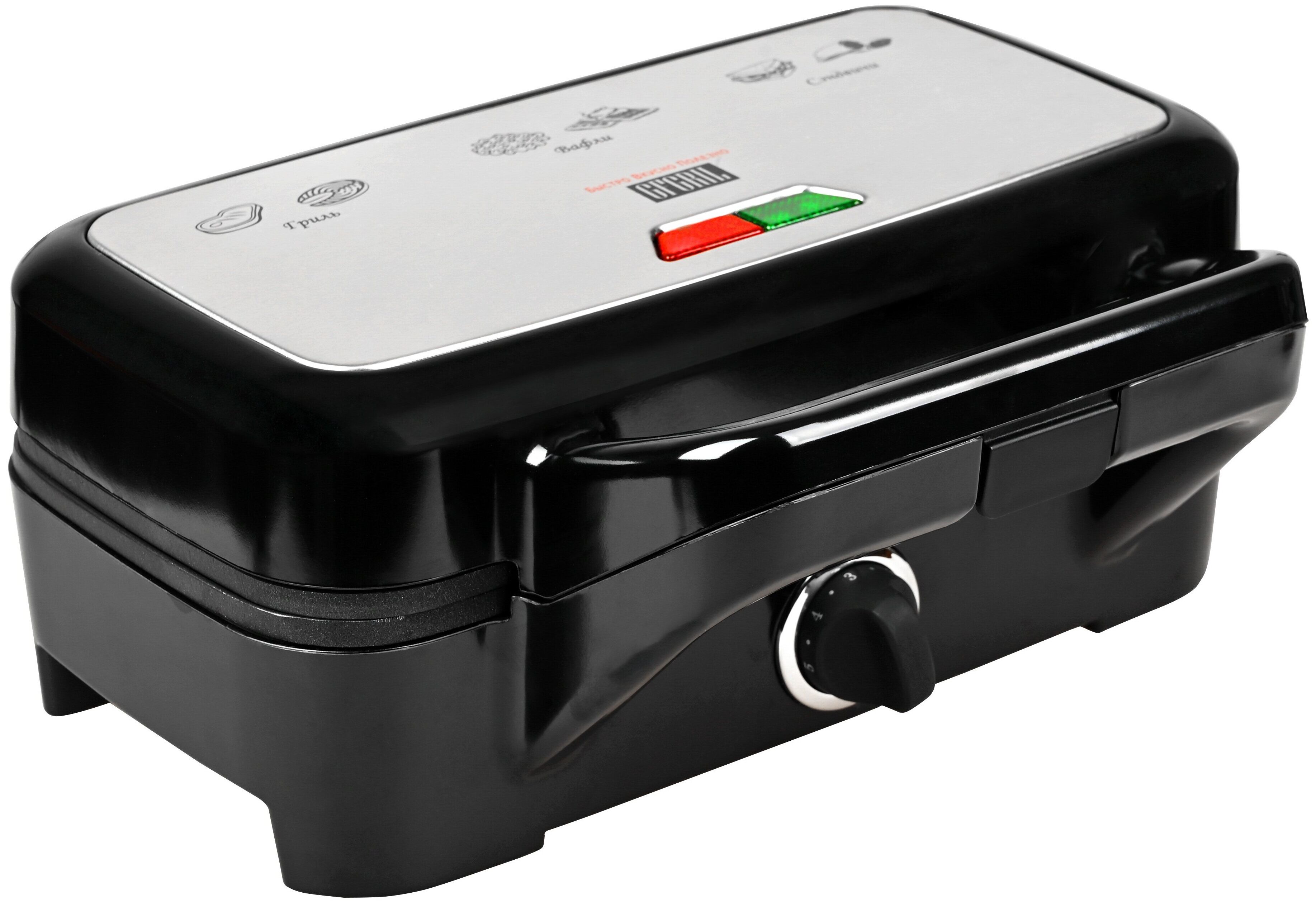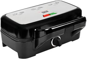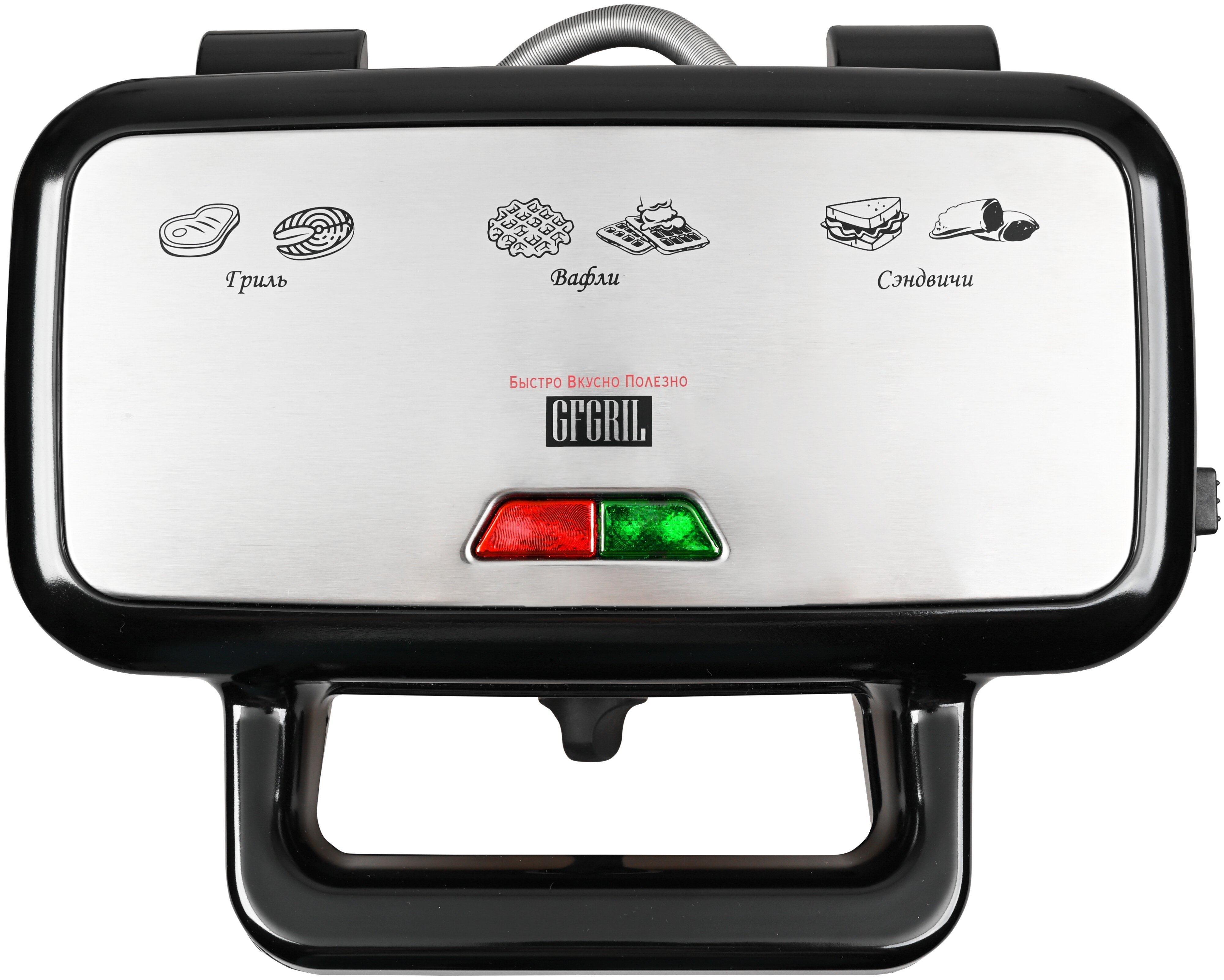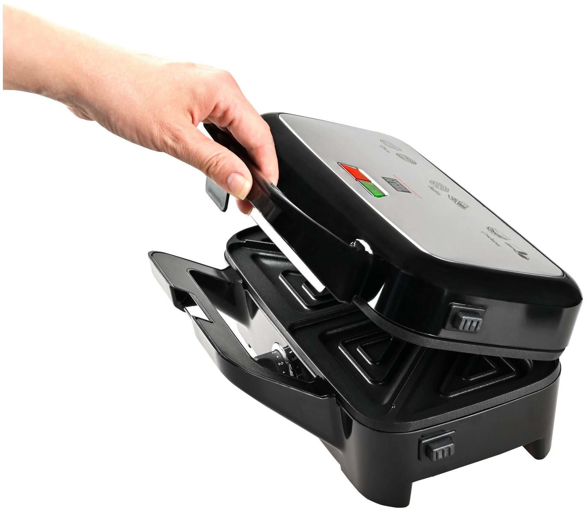 размер панелей 28 х 14.5 см; напряжение питания: 220-240В/50-60Гц; комплектация: 2 панели для гриля, 2 панели для вафель, 2 панели для сэндвичей