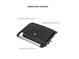 Современный гриль электрический JVC JK-MB025 с антипригарными панелями - идеальное решение для приготовления мясных, рыбных или овощных блюд, блинчиков, яичниц, панини или гренок в домашних условиях. Панели позволяют готовить еду без масла. С ними вы сможете готовить на гриле не только стейки, но и овощи, рыбу или горячие бутерброды и сэндвичи.