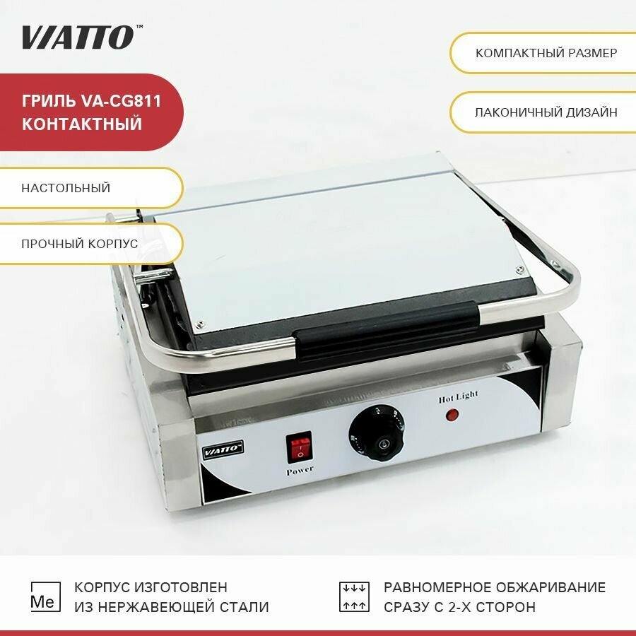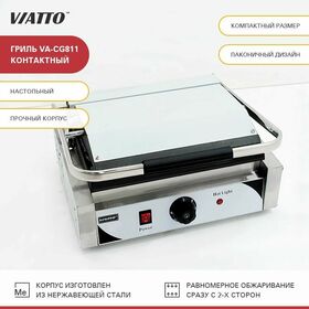 Контактный гриль Viatto VA-CG811 165368 предназначен для жарки мяса, рыбы, овощей, шаурмы, сендвичей.