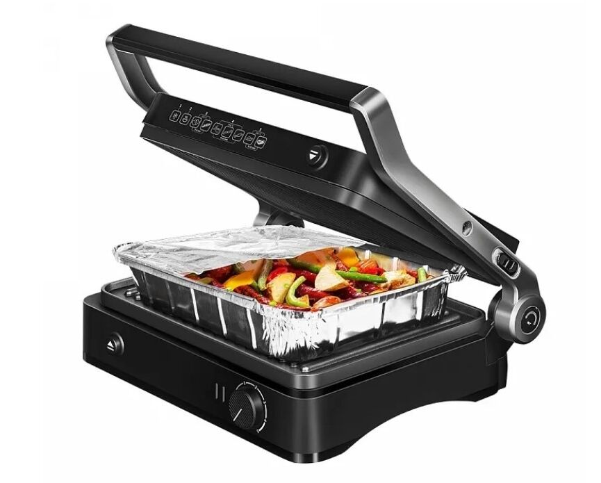 В комплект прибора входит съемный поддон, в который во время приготовление стекает масло и жир. Его, как и панели, можно снять и вымыть вручную или в посудомоечной машине.