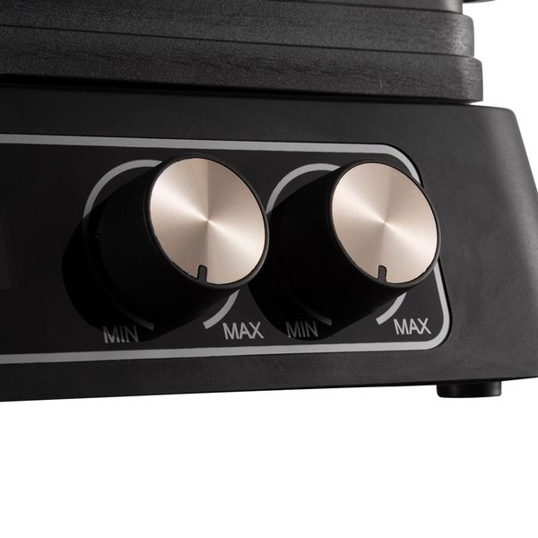 На панели предусмотрены два регулятора, при помощи которых вы сможете установить точную температуру нагрева как для нижней, так и для верхней панели. Температуру можно выбрать в диапазоне от 90 °C до 230 °C с шагом 5 °С.