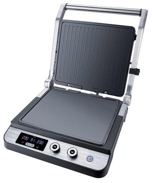 съемные пластины; индивидуальная регулировка температуры до 230° C для верхней и нижней пластины; таймер на 99 минут