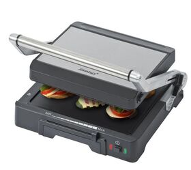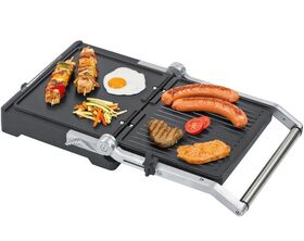 Плавный регулятор температуры гриля для получения оптимальных результатов жарки Съемные пластины гриля для легкой мойки В комплекте гриля 1 гладкая пластина и 1 рифленая пластина Большая рабочая поверхность гриля с антипригарным покрытием: 2 пластины размерами 27 x 24 см Функция снижения количества жира: Уменьшение количества жира благодаря автоматическому стеканию жира во встроенный поддон