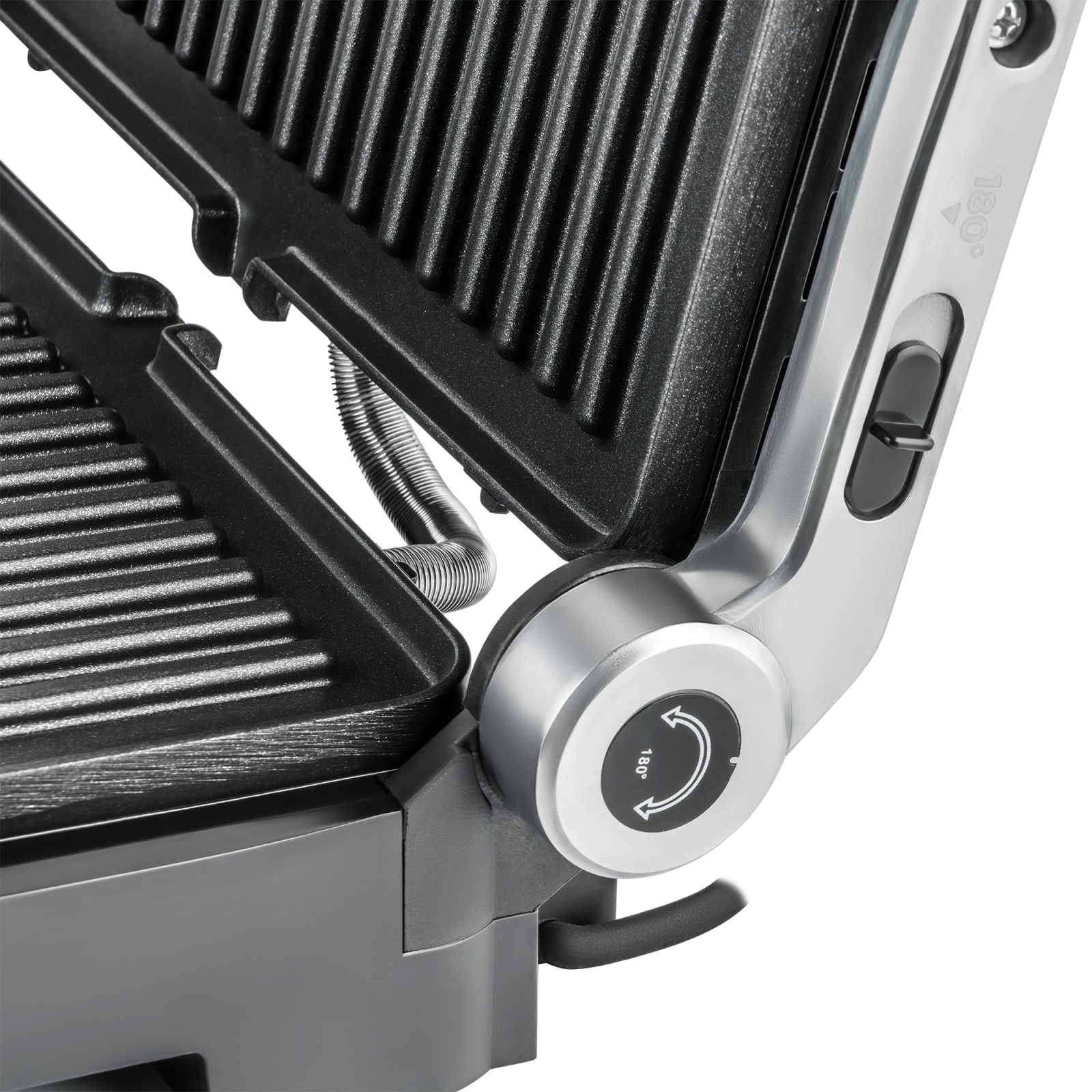 Максимальный угол раскрытия 180 градусов позволяет работать с данным устройством не только в режиме гриля, но и в режиме барбекю! Используйте сразу обе нагревательные панели в полностью раскрытом режиме, чтобы увеличить площадь приготовления!