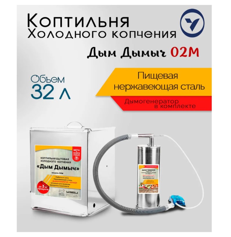 Коптильня холодного копчения Дым Дымыч 02М 32 литра - это усовершенствованная версия коптильни для холодного копчения Дым Дымыч 01М.