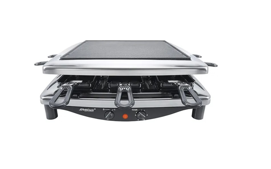 Раклетница Steba RC 3 Plus обладает качественным верхним грилем, благодаря которому, вы сможете готовить вкусное мясо, рыбу или овощи. Он изготовлен из натурального камня, поэтому обладает множественными плюсами – он не царапается, к тому же его можно мыть в посудомоечной машине, что согласитесь, не совсем привычно. Любителям швейцарского блюда фондю, понравятся сковородочки, которые имеют небольшой размер и оборудованы ручками. Они не нагреваются при жарке, так что вы можете быть спокойны – при правильном и аккуратном использовании, ожоги рук исключены. Если говорить о пластине, то она гладкая. Такая структура подойдет для запекания сосисок и овощей, а вот для мяса лучше установить рельефную пластину. Благодаря ей, оно получится более сочнее и вкуснее. Если вы настоящий гурман, то вам обязательно нужно купить раклетницу Steba RC 3 Plus. Вам понравится мясо, которое приготовлено таким способом. Устанавливать ее необходимо на ровную, горизонтальную поверхность. Таким образом, вы убережете себя от возможных травм и ожогов. Для еще лучшей безопасности, производитель оснастил данную модель ножками, которые не скользят на любой поверхности. Вы можете устанавливать различные температурные режимы при помощи специального регулятора температуры. Благодаря тому, что регулировка происходит плавно, вы сможете установить именно такое значение, которое вам необходимо в данный момент времени, а для того, чтобы знать, в каком режиме работает раклетница, производитель оснастил модель светодиодным индикатором