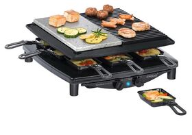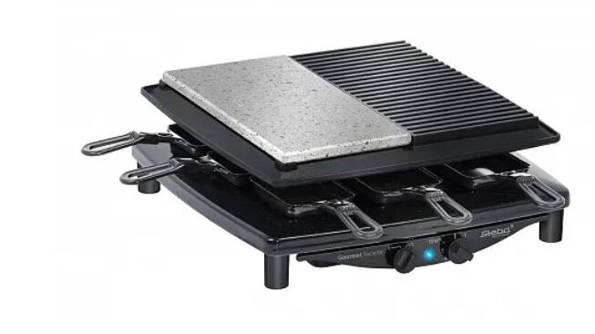 Если вы хотите перейти на здоровое питание, обратите ваше внимание на раклетницу Steba RC 4 plus. Представленное устройство позволит вам вкусно зажарить овощи, рыбу или мясо без использования растительного или оливкового масла. Благодаря антипригарному покрытию рабочей поверхности готовящаяся на ней пища не пригорает и не пристает к ней. Пятипозиционный регулятор позволит подобрать наиболее оптимальную температуру приготовления в зависимости от используемых ингредиентов и рецептуры блюда. Желоб для сбора жира существенно облегчает уход за раклетницей. Раклетница Steba RC 4 plus оснащена противоскользящими ножками, благодаря которым в процессе работы прибор устойчиво стоит на любой горизонтальной поверхности. Модель с классической черной расцветкой обладает мощностью, равной 1450 Вт, и площадью поверхности, соответствующей 841 см². Благодаря закрытой конструкции нагревательного элемента вы сможете быстро и легко очистить рабочую поверхность от остатков пищи, не боясь повредить его
