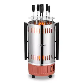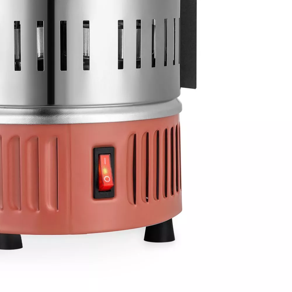 Инфракрасный нагревательный элемент обеспечивает такой же нагрев, какой дают угли в обычном мангале, а автоматическое вращение шампуров позволяет мясу оставаться сочным внутри и равномерно обжаренным снаружи!