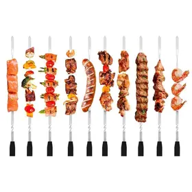 В комплекте с электрошашлычницей идут 10 шампуров. Помимо шашлыка из мяса, рыбы или овощей, приготовьте также шаверму, сардельки, картошку, гренки или даже курицу гриль! За 1 раз вы можете приготовить до 1 кг шашлыка.