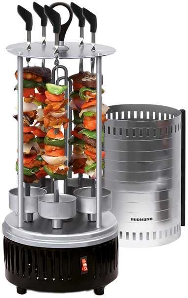 Частота вращения шампуров: 2 об/мин. 6 шампуров в комплекте.