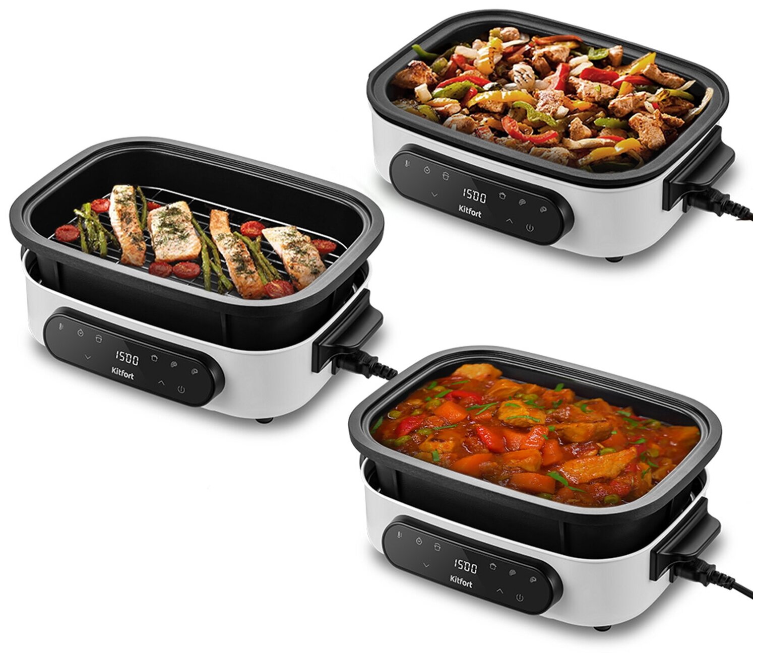 Электросковорода КТ-2087 предназначена для жарки, тушения и приготовления на пару разнообразных продуктов. Она поможет вам приготовить любимые жареные блюда без плиты. Отличный вариант для поездки на дачу или в длительную командировку.Мощность