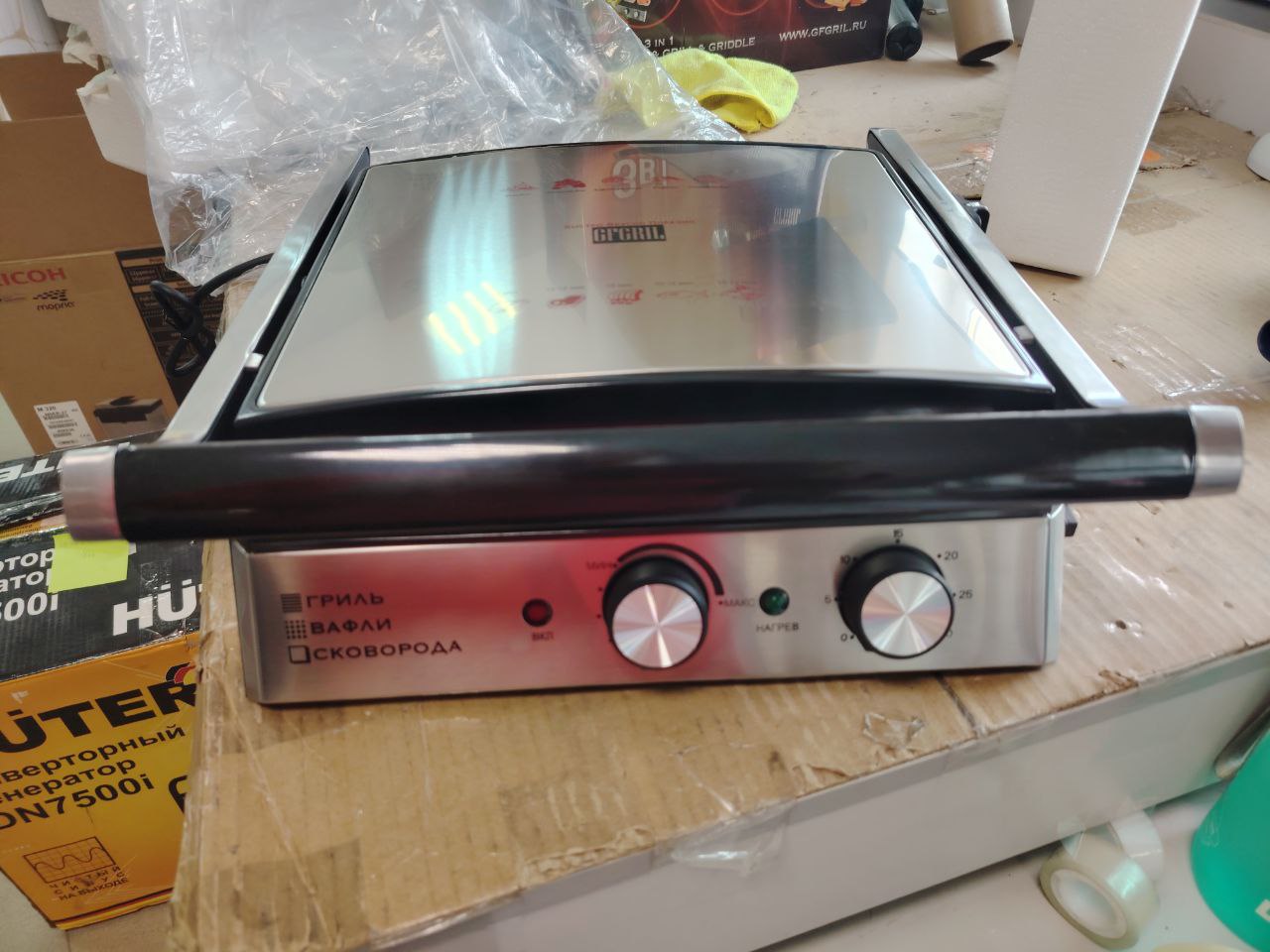 Гриль, Съемные панели (2 вида) – гриль/сковорода, вафли, Лоток для сбора жира