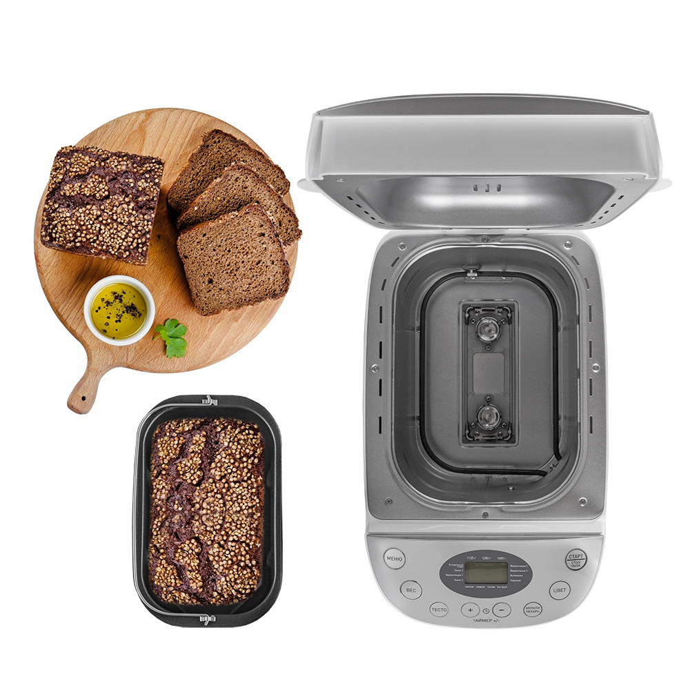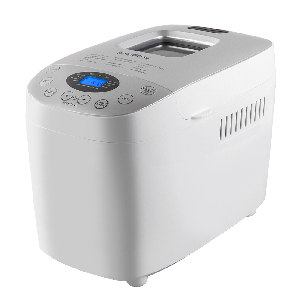 Устройство оснащено LCD-дисплеем для удобного контроля за процессом приготовления, а таймер отложенного старта позволит начать выпекание в удобное для вас время. После окончания работы хлебопечь автоматически переходит в режим поддержания температуры на 60 минут, чтобы ваш хлеб был горячим и свежим. Через удобное смотровое окошко удобно наблюдать за процессом.
