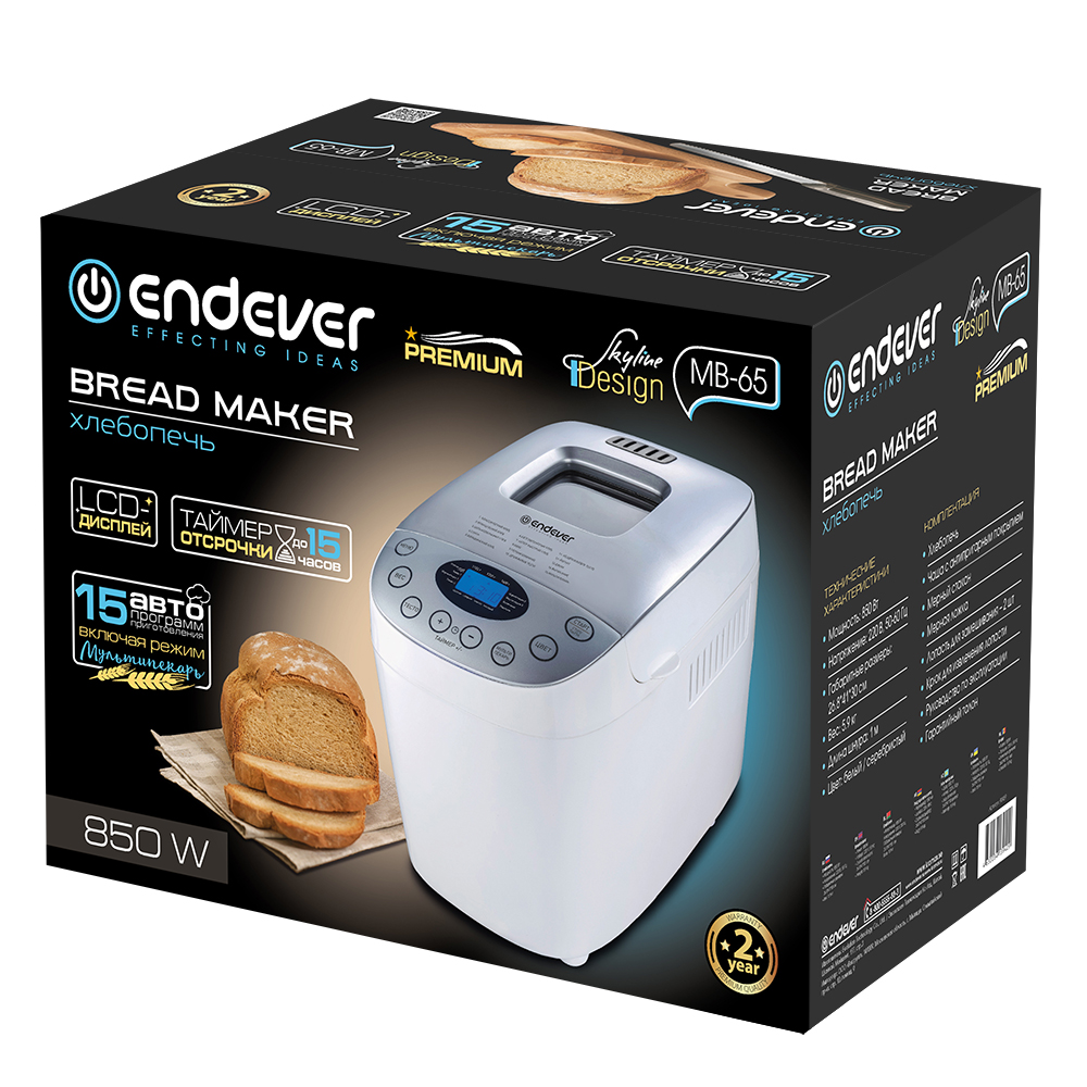 Хлебопечь Endever Skyline MB-66 - это универсальное и функциональное устройство, которое поможет вам приготовить вкусную и ароматную выпечку в домашних условиях. Мощность 850 Вт позволяет быстро и эффективно выпекать различные виды хлеба, подготовить тесто для выпечки, пиццы, пирогов и многое другое, а вес готовой продукции может составлять 1000 / 1250 / 1500 грамм, что позволяет удовлетворить потребности даже большой семьи.