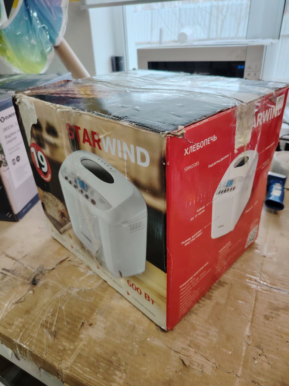 УЦ Хлебопечь Starwind SBM2085 белый/серебристый (плохая упаковка, б/у, нет документации, ремонт нагревательного элемента)