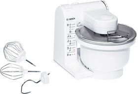 Кухонный комбайн Bosch MUM4405 — мощный прибор с венчиками для приготовления кремов, соусов и крюками для теста. Возможность доукомплектовать модель другими насадками позволяет существенно расширить функционал. Емкости чаши достаточно для замешивания 5 кг теста (2.5 муки и ингредиенты).