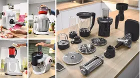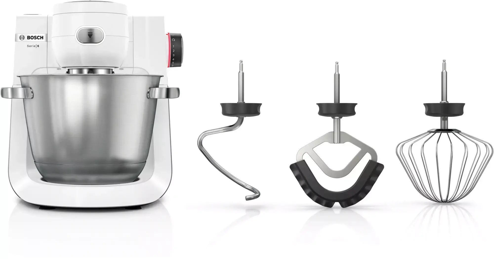Кухонный комбайн 1600 Вт Белый, Матовая нержавеющая сталь