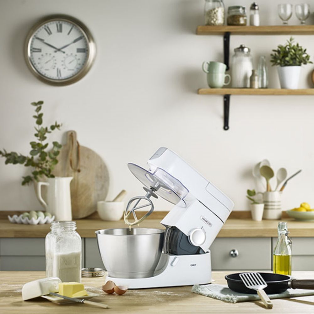 Кухонная машина Kenwood Chef оснащается металлической чашей емкостью 4,6 литра с удобными боковыми рукоятками и градуированной шкалой на внутренней поверхности. В базовой комплектации, сразу при покупке, вы получите фирменную универсальную К-образную насадку, крюк-тестомес (в первую очередь подойдет для замешивания густого теста) и венчик-взбиватель, а вот все прочие насадки и аксессуары уже можно докупить отдельно, по мере надобности.