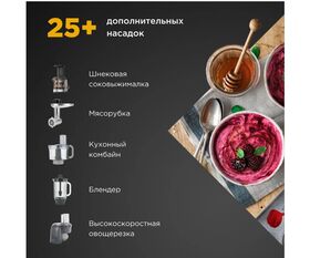 Модель обладает интуитивно понятной панелью управления: для выбора предпочтительной скорости достаточно прокрутить удобный поворотный регулятор. Вы легко подберёте оптимальный вариант для ингредиентов разной консистенции.