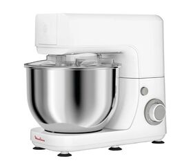 Moulinex QA150110 — универсальная кухонная машина с чашей объемом 4,8 л. В ней можно приготовить большое количество теста. За счет планетарного 3D-вращения ингредиенты перемешиваются равномерно, позволяя получить максимально однородную массу.
