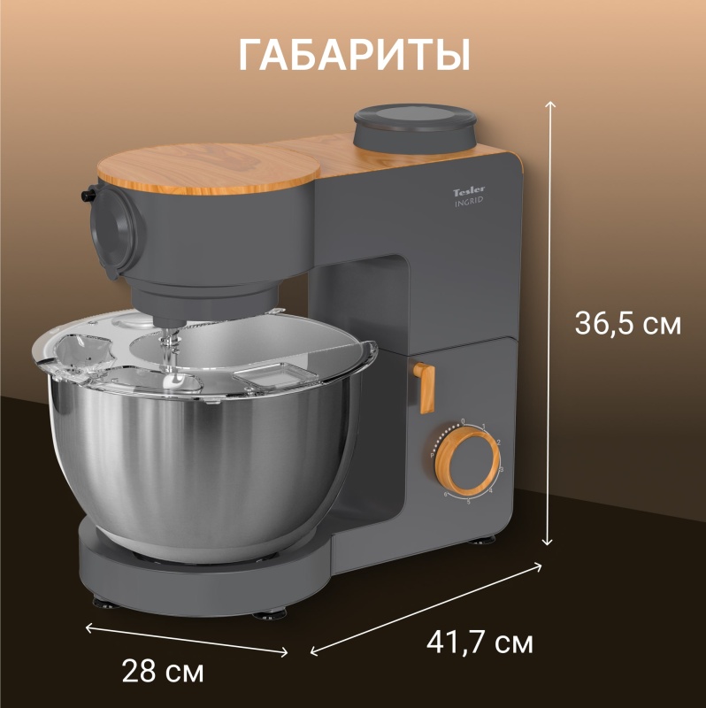 Насадки/ функции:мясорубка, блендер, крюк для замешивания теста, Венчик Количество скоростей:6