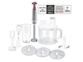 Мощность прибора составляет 1000 Вт, а объем чаши в комплекте 1,75 л.Благодаря мощному медному мотору и специально разработанному редуктору кухонный комбайн проработает гораздо дольше более дешевых аналогов.