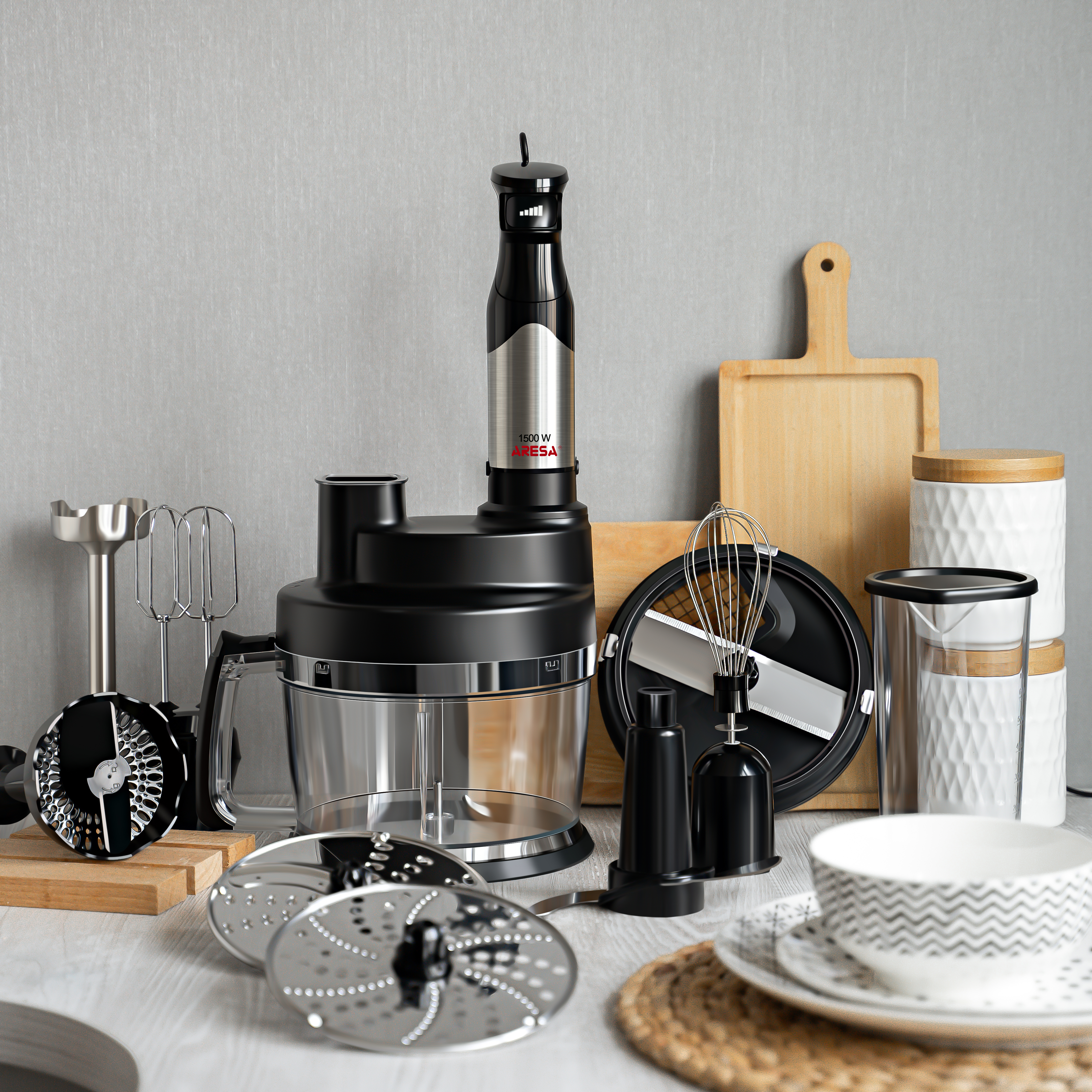 9 основных функций: приготовление пюре, нарезка кубиками, приготовление напитков, замешивание теста, взбивание, нарезка, шинковка, тёрка, измельчение