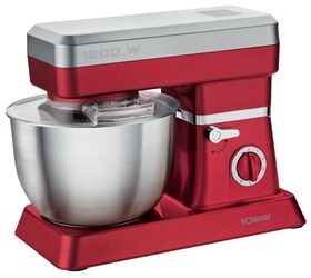 Кухонная машина Bomann KM 398 CB предназначена для приготовления теста, кремов, соусов, взбивания яиц. Это простая в использовании модель с прочной и вместительной чашей из нержавеющей стали, которая займёт достойное место на современной кухне. Шесть режимов работы и три насадки, входящие в комплект, позволяют получить тесто необходимое консистенции: более жидкое, подходящее для приготовления блинов, или более густое, для выпечки. Кухонная машина оборудована прорезиненными ножками, не позволяющими ей скользить по поверхности стола. При необходимости сетевой шнур можно убрать в специальный отсек на корпусе. Функция отключения при перегреве на даёт двигателю выйти из строя и позволяет продлить срок эксплуатации комбайна. После использования комбайна чашу и насадки, входящие в комплект, можно вымыть в посудомоечной машине.