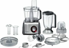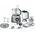 Оборудование: двухсторонний диск для тонких и толстых ломтиков, двухсторонний диск для тонких и толстых чипсов, крюк для замеса теста, руководство пользователя на польском языке, чашка для коктейлей, наконечник для смешивания, наконечник для взбивания, минималаксер, многофункциональный нож, толкатель, диск для картофеля фри, соковыжималка для цитрусовых