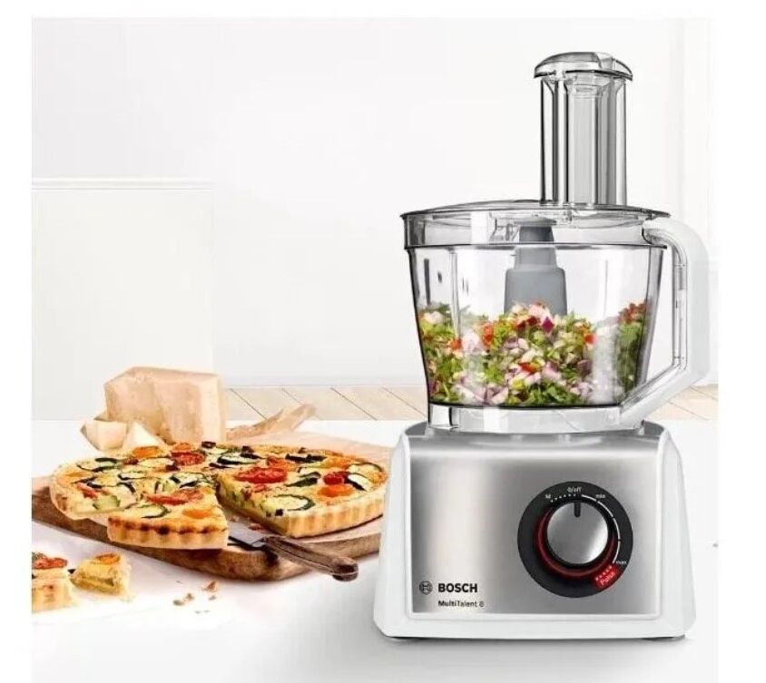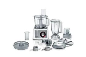 BOSCH - немецкий бренд, под которым производится различная бытовая техника для дома и кухни: крупная, мелкая, климатическая и техника для индивидуального ухода. Компания Bosch (полное название Robert Bosch GmbH) основана в далеком 1886 году в Штутгарте немецким инженером и предпринимателем Робертом Бошем.Надежный и мощный кухонный комбайн Bosch MC812S844 с 50 функциями - универсальный прибор на кухне. При помощи Bosch MC812S844 натрите на терке овощи или измельчите фрукты, быстро замесите хлебное тесто, смешайте вкусный смузи, нарежьте лук, натрите морковь, измельчите кофе в зернах или нарежьте травы.Аксессуары пригодны для мытья в посудомоечной машине, что экономит много времени.особенности. Мощный мотор в 1250 Вт для удобной работы с большими объемами продуктов и выполнения самых сложных задач. Сверхмощный двигатель: для удобной работы с большими объемами продуктов и выполнения самых сложных задач. Более 50 функций измельчения, шинковки и смешивания, благодаря универсальным аксессуарам, таким как миксер, измельчитель и различные ножи,такие как нож MultiLevel6. XXL чаша объемом 3.9 л для приготовления до 1.5 кг теста и блендер объемом 1.5 л.Регулируемые режимы скорости с LED-дисплеем и функция моментального старта для измельчения, а также импульсный режим для работы с интервалами, как например при дроблении льда. Практичный: насадки можно хранить внутри чаши, таким образом они всегда под рукой