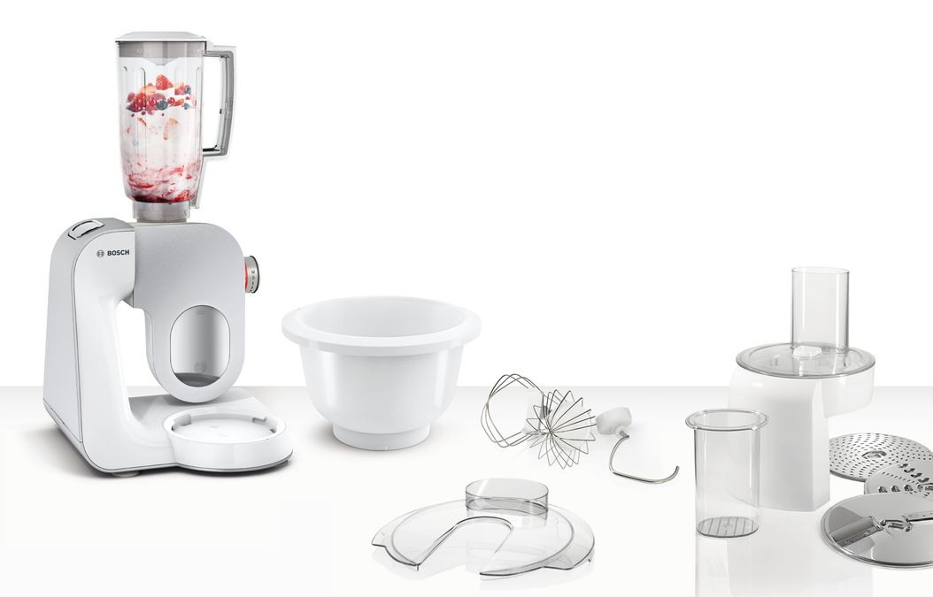 Кухонный комбайн Bosch MUM58234 благодаря своей функциональности возможно использовать для приготовления любых рецептов. Быстрое и идеальное смешивание всех ингредиентов обеспечивает технология 3D PlanetaryMixing. Детали контактирующие с продуктами не содержат бисфенола А, что безусловно повышает безопасность в эксплуатации.